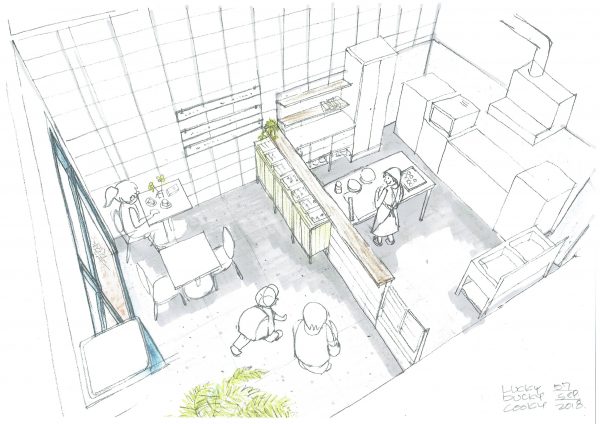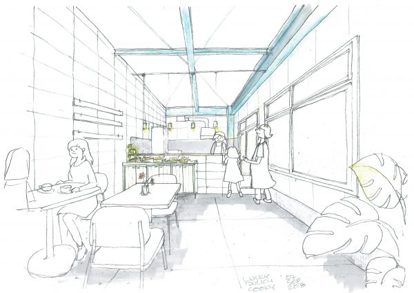 LuckyDuckyCookyのテナント計画は、ミセガマエヤでの濃密なヒアリングの後に引き継ぎを受けたのが去年のまだまだ猛暑の晩夏の頃。プレゼン・設計から工事監理までを担当し、去年の年末にお引渡し。工事は大学時代の同級生でゼミも一緒だったインテリア末永の末永さんにしていただきました。そういや設計の打合せの時にいただいたカルダモンのショートブレッド、すごくおいしかったなあ、、と思い出していたら食べたくなってきた。やばいやばい早くおばあちゃんに送らないと。