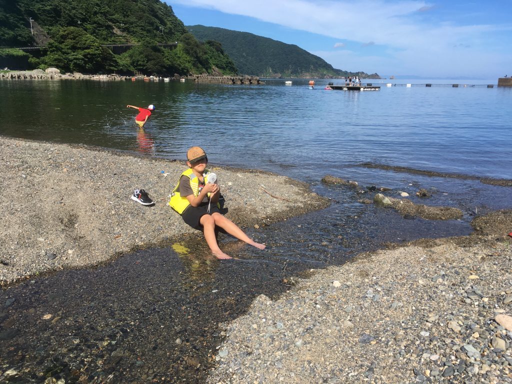 サビキ釣りを楽しむ子どもたちは、小サバを次々と釣り上げていく。釣れなくなってくると隣の海水浴用の小さな浜で水遊びをし、また漁港に戻って小サバや豆アジを釣り上げたりしている。持って行ったおにぎりや唐揚げやバナナをそれぞれ好き勝手なペースで食べてはまた釣り糸を海に落とす。入れ食いというほどではなかったけど帰宅後に数えてみると結構な釣果であった。