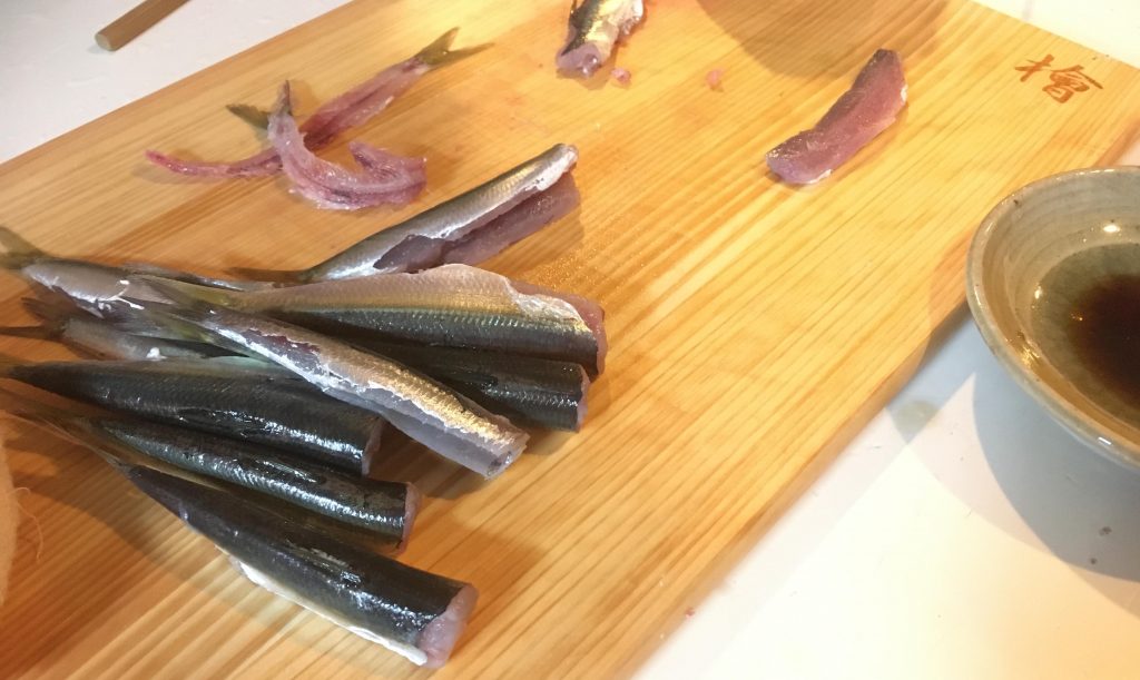 帰宅してさっそく少しだけ刺身でいただく。さすがに新鮮なのでぷりっぷりで美味しい。全部で126のイワシと小サバ5、あと小さな小さな小鯛1。残りのイワシは唐揚げと梅煮に、小鯖は塩焼きで。