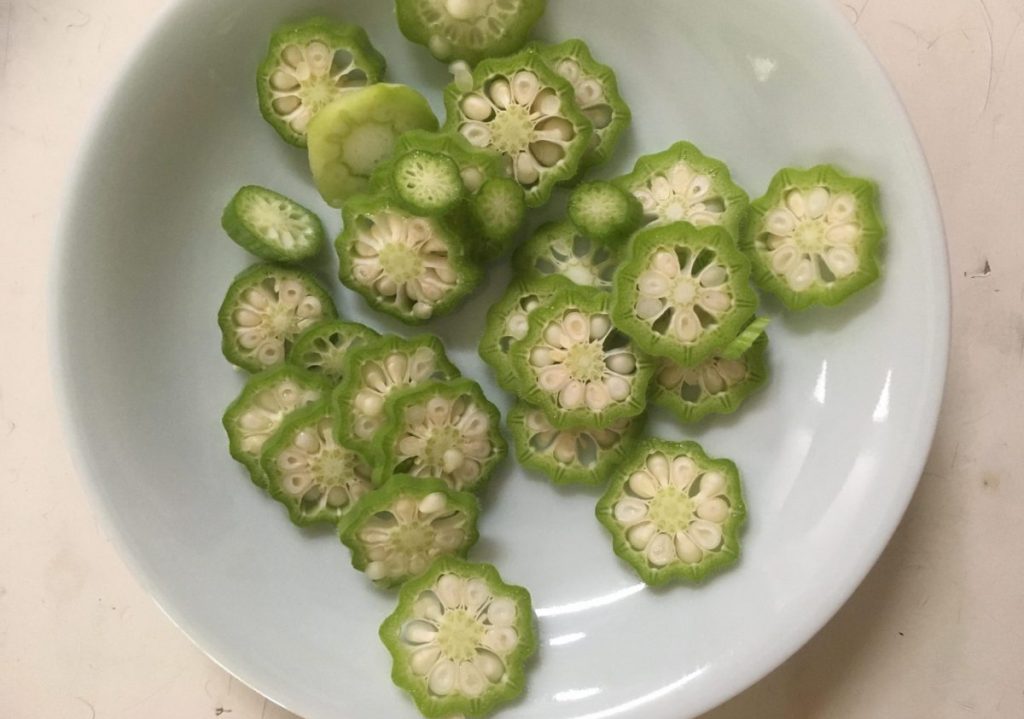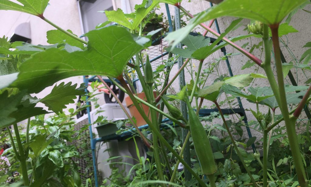 今年はキュウリが元気なく、オクラとモロヘイヤ好調