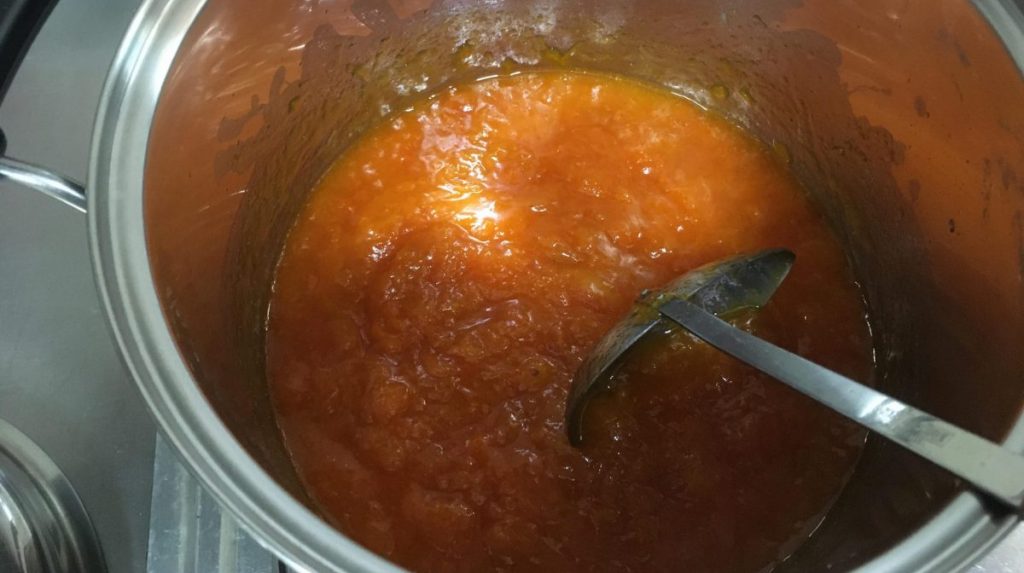 あんずジャムを煮る