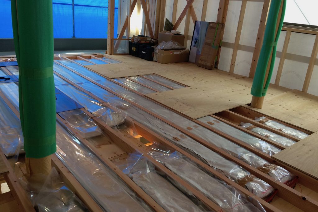 22日と23日の2日間は、彦根の現場でアクアレイヤーの工事。エアコンを熱源として2階の床下に敷設するエア・アクアである。初日は8時半ごろに現場に到着、現場監督と…