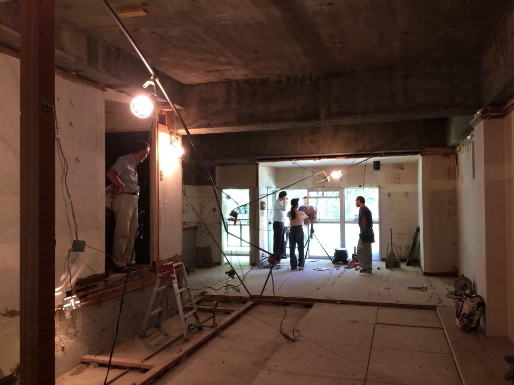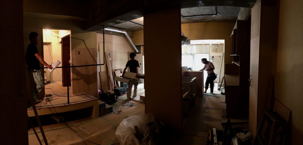今を盛りとセミたちが盛り上がる緑豊かな高野第三住宅にて、先週末ミセガマエヤさんのリノベーション工事が始まりました。今はうっそうと繁って木漏れ日を落とすケヤキの高…