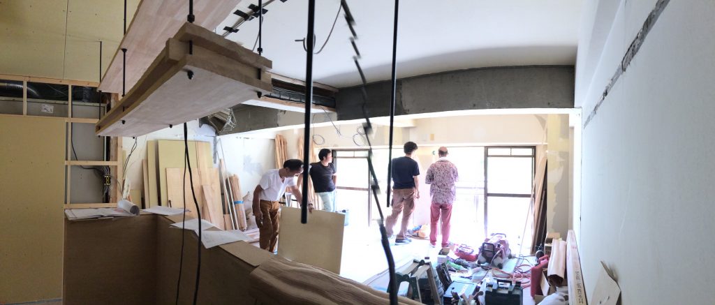 土曜日は朝からコーヒー豆焙煎所の工事中現場へ。先に中島さんが来ていて新品の建具をダメージ加工している。オイルで汚したりスコップで叩いたりと、建築現場としてはなか…